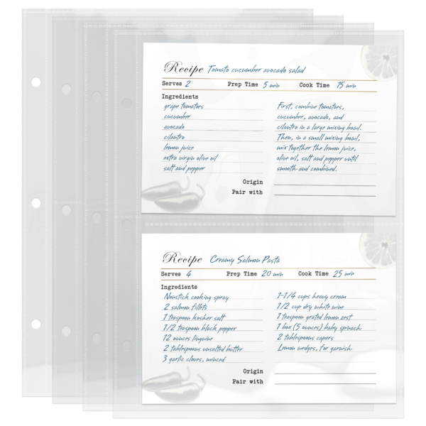 PREMIUM MATERIAL – Non-glare, Acid-free, Odor-free, Non-PVC, Archival-safe, Polypropylene index card page protectors perfectly suited for mini 3-ring half letter size recipe binders & organizers. Our 2 pocket sheet protector is made from environmentally safe recyclable polypropylene.